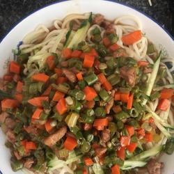Noodles ( Moderate amount ) | Beans, carrots, celery, pork, cucumber (appropriate amount) |