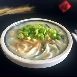 • Illustration of making noodles with flour paste 22. Prepare side dishes.Soak dried amaranth in warm water until soft.Wash and chop leeks.Mince green onion and ginger.Blanch celery leaves in hot water and chop them for later use