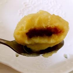8. Press the sweet potato dough into a cake, add bean paste, seal it with a tiger's mouth, and roll it into a ball.