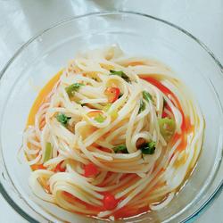 4.Put the cold noodles into a bowl and pour in the prepared juice