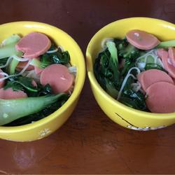 5.Add ham sausage, then add seasonings (I only added salt, vinegar, chicken essence, pepper, and chili powder), seasonings Depends on personal taste