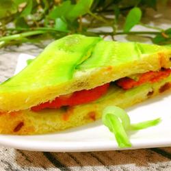 10.Finally, lay out the cucumber slices, and then use scissors to cut the cucumber slices flush with the toast