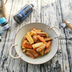 2.Pour the vegetarian steak cut into strips into the pot and stir-fry.The vegetarian steak itself contains oil, so there is no need to add additional oil.The oil will come out when stir-frying, which is healthier