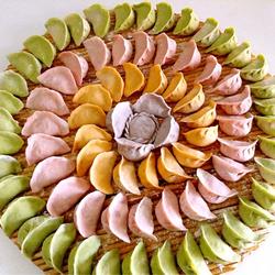 • Illustration of making dreamy colorful dumplings 66.Put appropriate amount of oil, light soy sauce, salt, MSG, sesame oil, minced green onion and minced ginger into the meat filling.Mix well.