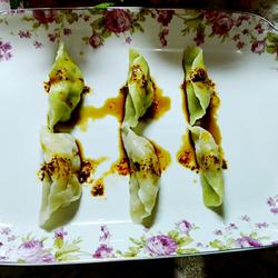 16.Put balsamic vinegar, soy sauce and sesame oil into the chili oil and put it on the dumplings.