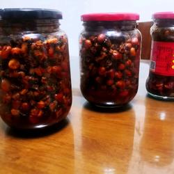 1.The King Oyster Mushroom Beef Sauce made last night has been completely cooled, and the peanuts fried today also need to be cooled.I bought a bottle of Laoganma Tempeh.
