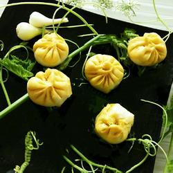 12.Put the white part in the middle of the pumpkin, wrap it up, and then make the dough a little round