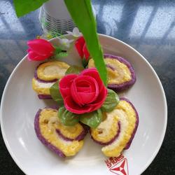 2.Pour water into the steamer and bring to a boil.Peel and slice the pumpkin, peel and slice the purple sweet potato.Put it in the steamer, cover it, and steam until soft