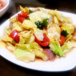 1.Wash the cabbage Break it apart and tear into small pieces.Shred the ginger, cut some green and red peppers and onions into small pieces.