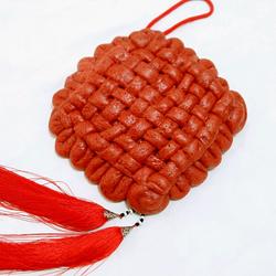 8. First lay out one of the woven grid squares, take an appropriate amount of dough and roll it into a thin strip., as shown in the picture, it is surrounded by a circle or two of "knots" on the four corners, which makes it look beautiful.