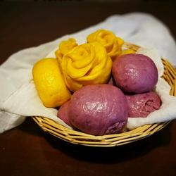 • Illustration of how to make two-color multi-grain steamed buns 1414. After sorting it out, it became rose steamed buns.The author was lazy and only made a few