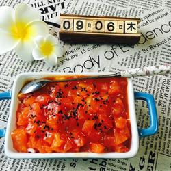 8.Will be adjusted Spread the flavorful tomato sauce on the fried rice and sprinkle with a little black sesame seeds.Isn’t it very appetizing?
