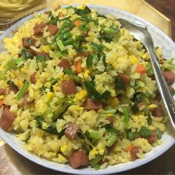 4. Turn to low heat, pour in the eggs, so that the eggs can be better wrapped in each particle On rice