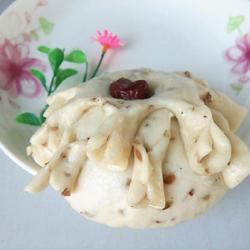 6.Take the dumpling skin and cover it on the round dough, press it down with dates and cut it into equal parts