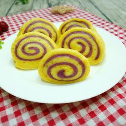 The amount of flour can be adjusted according to the dryness and humidity of purple potato puree and sweet potato puree.When steamed, the sweet potato puree is usually wet, while the purple potato is drier.You can put some water on the knife when cutting to prevent the dough from sticking to the knife.