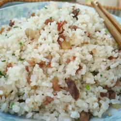 1. Prepare the bacon and green onion rice.