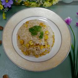 3.Put in the corn kernels and stir-fry for a while before adding the rice.