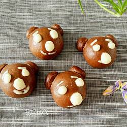 5. Take the chocolate dough and knead it into the shape of a steamed bun to make a bear's face.