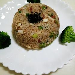 5. Add the white rice and stir-fry evenly, add Salt and MSG