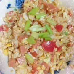 2.Onion , cut into sections, rice, eggs, ham sausage, tomatoes, ready