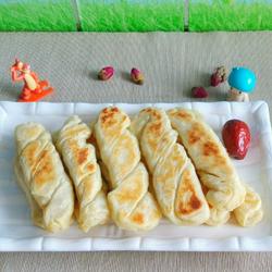 6. Stretch and twist each small roll into a twist and put it into the electric baking pan quickly Cover to set the shape and fry covered until golden brown on both sides.