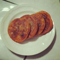 4. Put the red bean filling into the pumpkin dough and pat it into a round cake with your hands Status