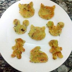 5.After frying, in order to attract the baby to eat more, I made some with a mold Cartoon shape, haha, leave the leftovers for dad to eat