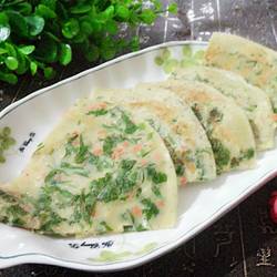 8. Heat the pancake pan, apply an appropriate amount of oil to prevent sticking, add an appropriate amount of batter, shake the pan and spread it evenly, and try to spread the batter evenly