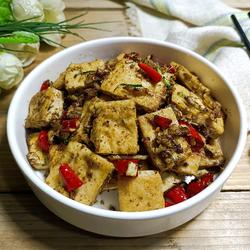 3. Heat the oil in a pan and add an appropriate amount of salt.Put in the dried tofu