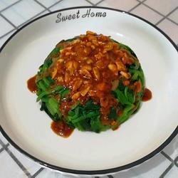 Spinach, water ( ) | Minced garlic, soy sauce, aged vinegar, oyster sauce, salt, sesame paste, chili oil ( ) |