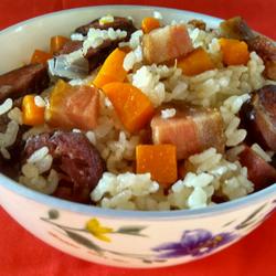 9.The fragrant rice cooker bacon and sausage claypot rice is out of the pot.