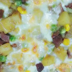 It is recommended to spread the top layer of cheese at intervals, so that the effect will be better, and you can see the color of the dish and the color of the cheese.Because there is already a layer of cheese underneath, it will not affect the taste.