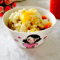 6.After the rice is cooked, beat an egg and simmer for 10 minutes