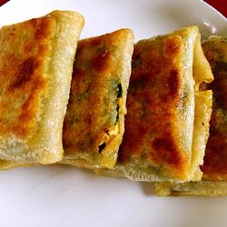 9.Place the folded side in the pan and fry first, then flip over and fry again