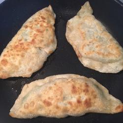 3. Wrap the seasoned egg, shrimp, meat and leek filling like dumplings, flatten and set aside.