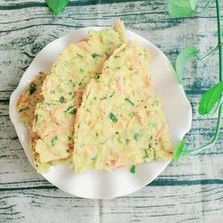 5.Heat the pan with oil, and spread the dough evenly in the pan a little at a time