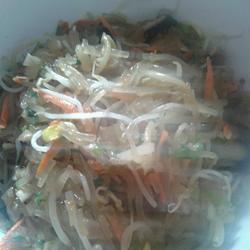 1.Cook the vermicelli first and cut it spare.Cut the pork belly into thin strips, slice the mushrooms, and cut the carrots into shreds.Wash the bean sprouts and dice the onions and celery