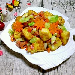 3. Heat a little oil in a wok, pour in the steamed buns coated with egg liquid and stir-fry until golden brown and set aside.