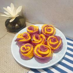 1. Prepare ingredients: cut pumpkin and purple sweet potato into small pieces, steam them in a steamer until soft; add warm water to white sugar and add appropriate amount of yeast Let sit.