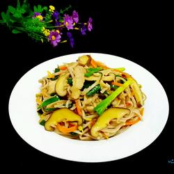 6. Heat oil in a pan, add shiitake mushrooms and shredded carrots and stir-fry.