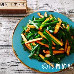 1. Cut the leek into sections (the length refers to the width of the dried tofu), cut the dried tofu into strips (the width refers to the width of the leek), and shred a piece of ginger.