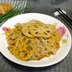 6.Add all the seasonings, and lotus root slices, stir evenly