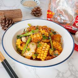 2. Pour an appropriate amount of water into the pot and bring to a boil, then add potatoes and corn cubes