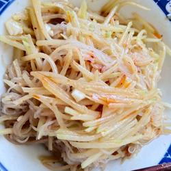 1. Grate potatoes into shreds and cook them in cold water.Cook vermicelli in cold water and mince garlic