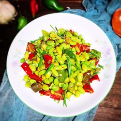 7.Add edamame and stir-fry until fragrant, about 2 minutes