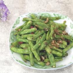 4. Add the drained green beans and stir-fry evenly, add salt and chicken essence and stir-fry After mixing, take it out of the pot.