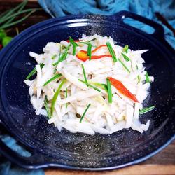 1.Peel the lotus root, wash and cut into shreds, wash off the surface starch, remove and drain and set aside
