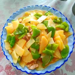 5.Add green pepper and stir-fry evenly to make the dish delicious
