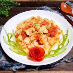 Put the tomatoes into the pot and stir-fry the tomato juice first, then add the diced lotus roots and stir-fry until the diced lotus roots absorb the flavor of the tomato juice., the lotus root diced out of the pot is very appetizing with a slight sweet and sour taste.
