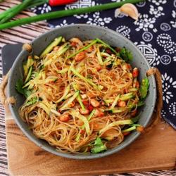 2.Wash the peanuts and dry them, cut the cucumber into shreds, mince the garlic, chop the green onions, and cut the coriander into inch-long sections